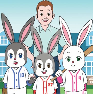 Three adorable Funny Bunnies: Olivia, James, and Morgan, are excited because today is the day they go to their favorite neighbor Mr. Tigglesworth’s house for a fun-filled day. These three Funny Bunnies are siblings who love to visit Mr. Tigglesworth: he is always welcoming and he enjoys their company and the happiness they bring him. On this sunny day, Olivia and Morgan teach their little brother James Bunny how to play baseball and improve his skills. The bunnies love the excitement of the game, and they enjoy a few laughs at the same time playing baseball in Mr. Tigglesworth’s yard. A day they will not forget!